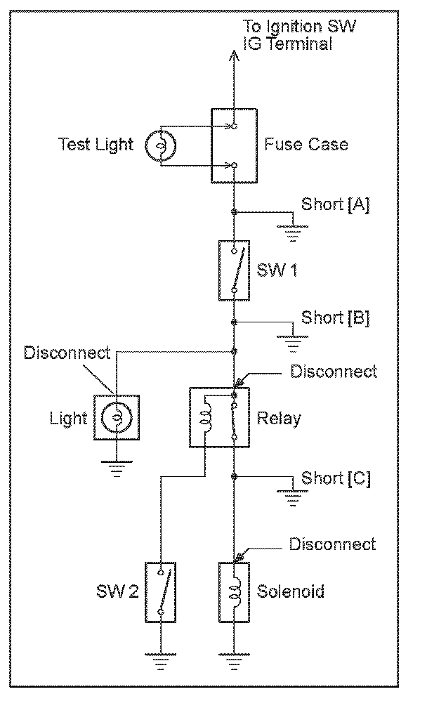 c. Establish conditions in which the test light comes on.