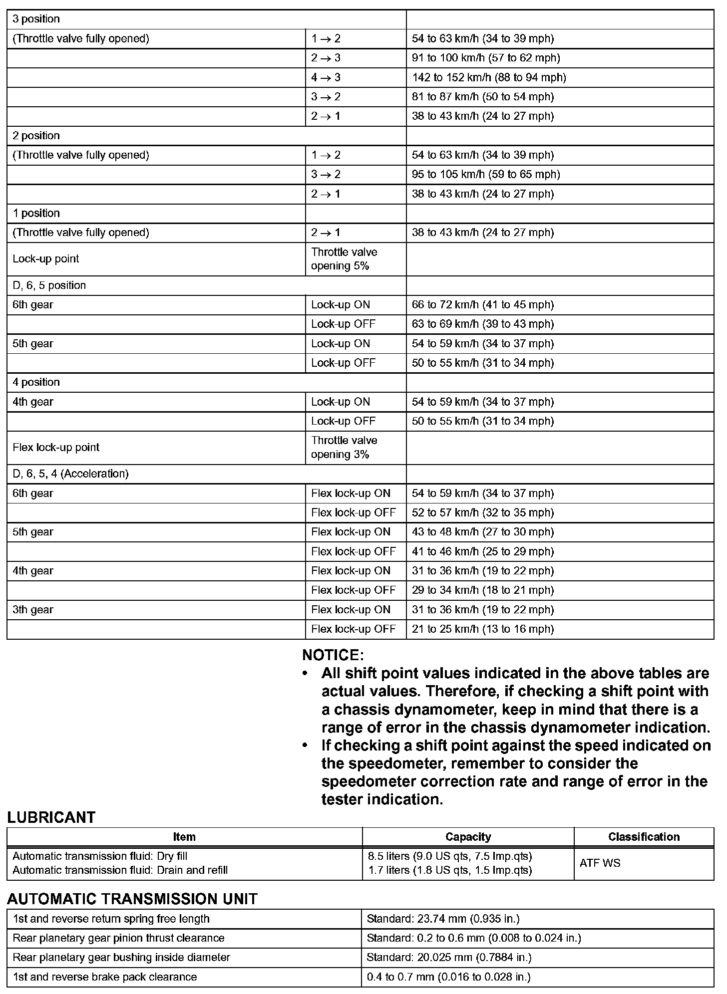 Automatic Transmission-Service Data (Part 2):