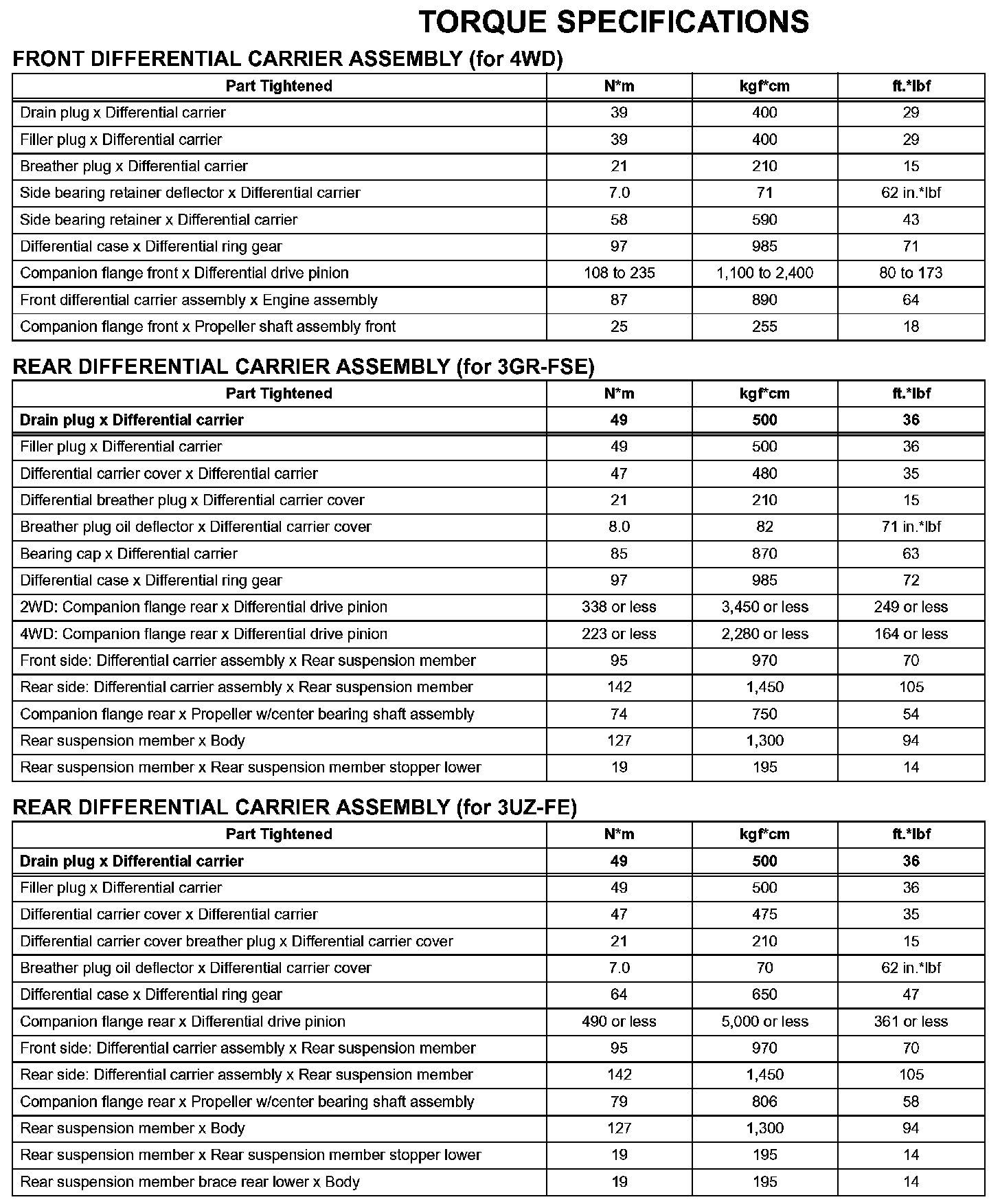 Differential-Torque Specifications: