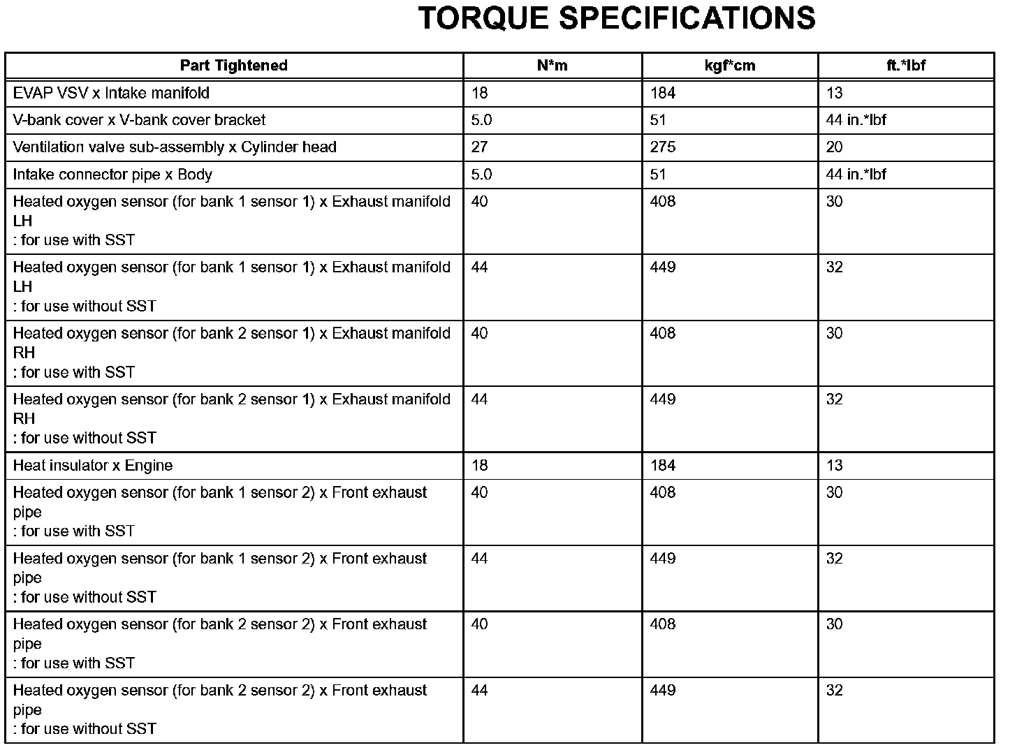 Emission Control-Torque Specifications: