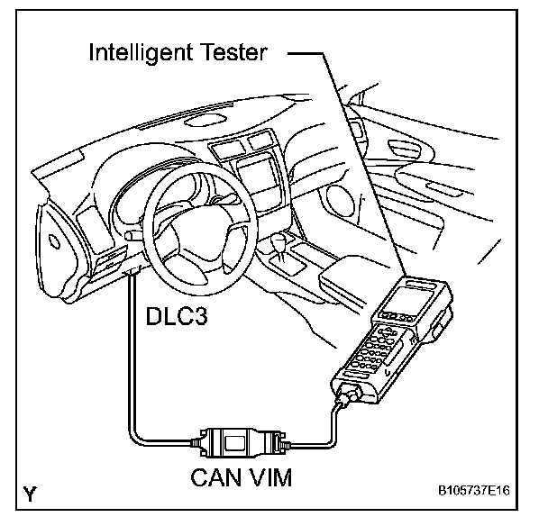 HINT: Connect the cable of the intelligent tester to the DLC3, turn the engine switch on (IG) and attempt to use the tester. If the display indicates that a communication error has occurred, there is a problem either with the vehicle or with the tester. If communication is normal when the tester is connected to another vehicle, inspect the DLC3 of the original vehicle. If communication is still not possible when the tester is connected to another vehicle, the problem may be in the tester itself. Consult the Service Department listed in the tester's instruction manual.