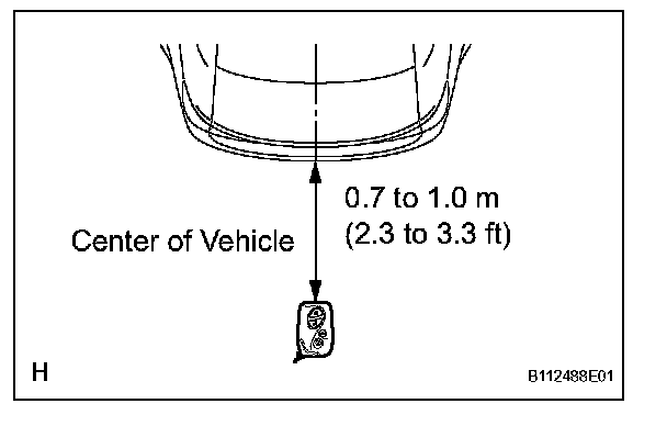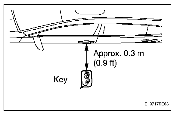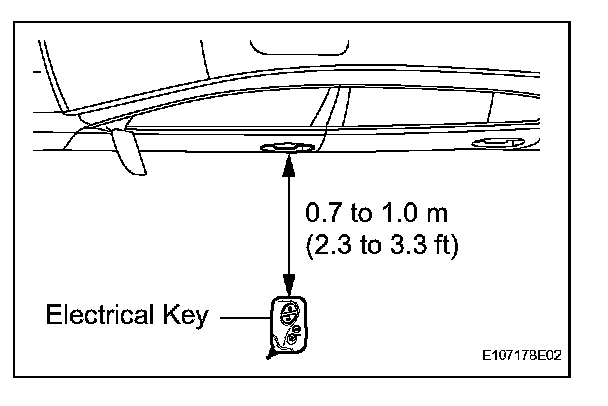 2. Step 2:When the electrical key is brought within 0.7 to 1.0 m (2.3 to 3.3 ft) of the vehicle, check that the system enters unlock standby mode.