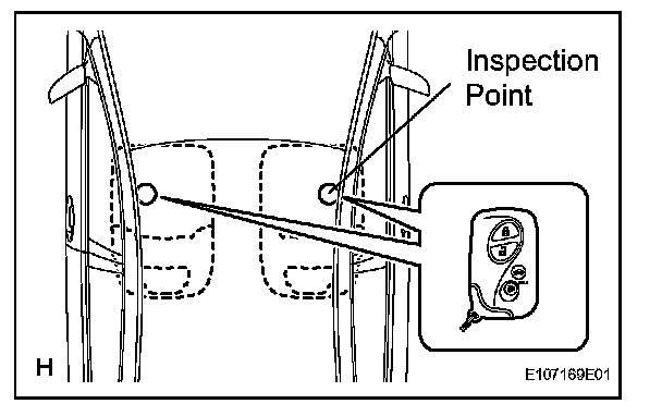 3. Inspect the entry ignition operation's detection area. Pay attention to the direction of the electrical key in the illustration. When the electrical key is in either of the 2 locations in the illustration, check that the engine can start.