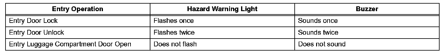 h. Check the answer- back function (hazard warning light flashing and buzzer sounding).
