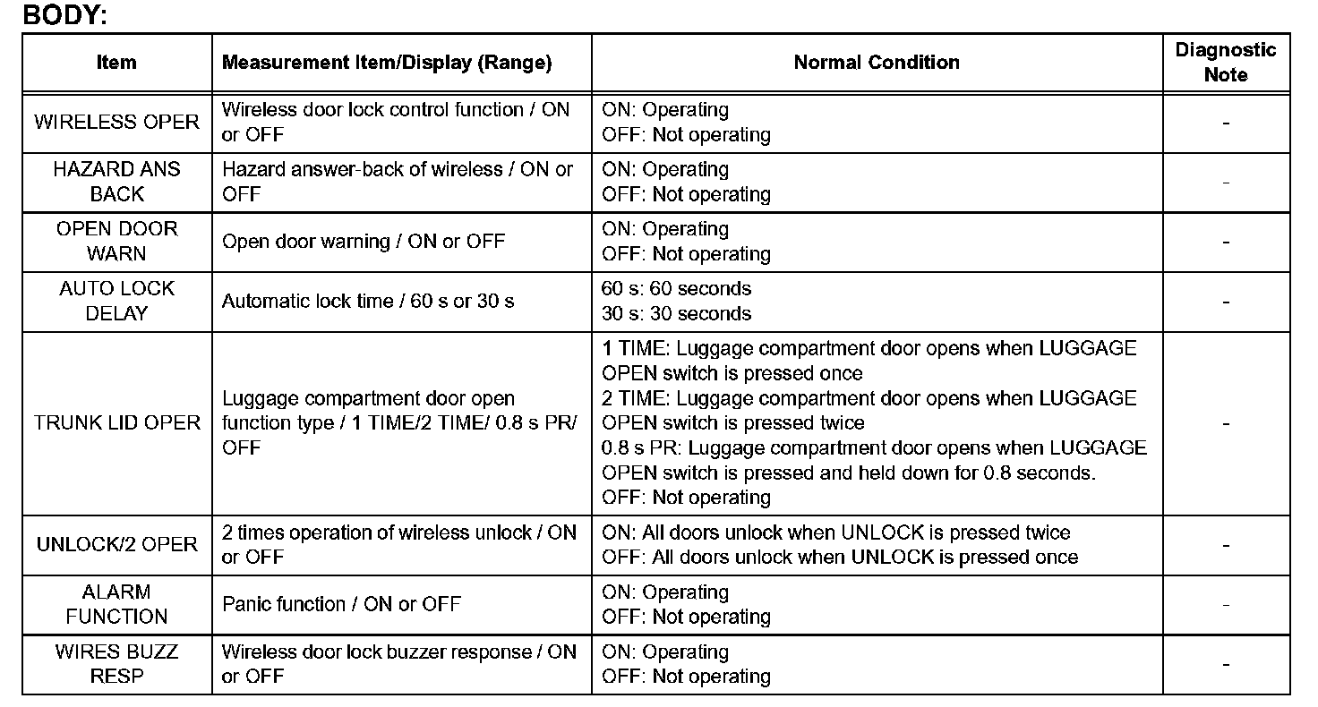 c. Enter the menus.DIAGNOSIS / OBD/ MOBD / BODY / DATA LIST.