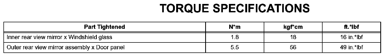 Mirror-Torque Specifications: