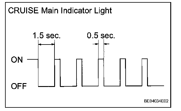 - If a malfunction occurs in the vehicle speed sensors, the stop light switch, or other related parts during cruise control driving, the ECU actuates AUTO CANCEL of the cruise control and blinks the CRUISE main indicator light. This indicator light informs the driver of the malfunction. At the same time, the malfunction is stored as a diagnostic trouble code.
