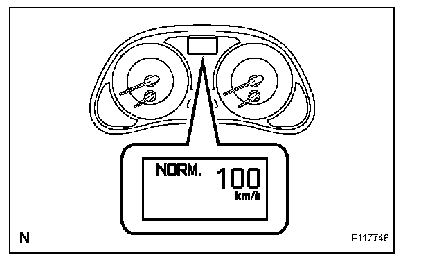 b. Turn the cruise control main switch on. Then push the main switch to MODE for 1 second or more to change to the constant speed control mode. Check that "NORM" is indicated on the display.