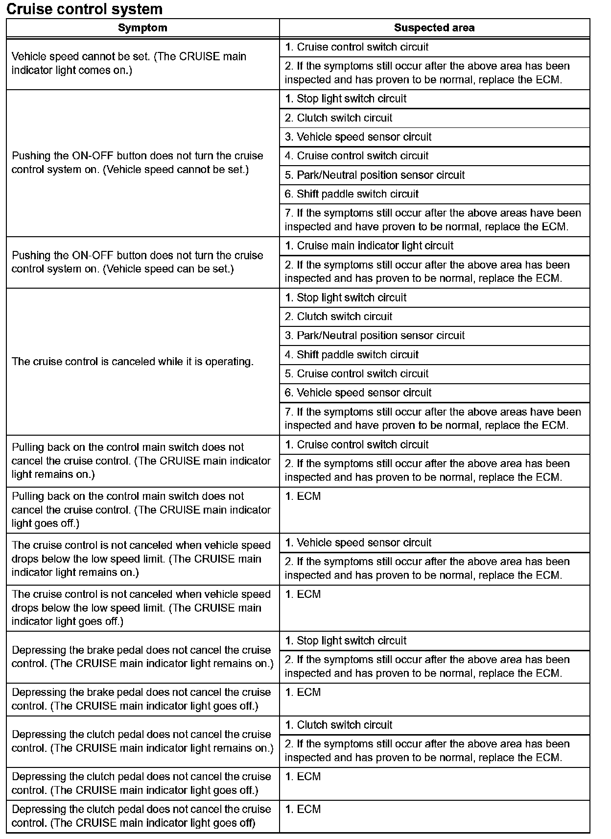 Problem Symptoms Table-Cruise Control System (Part 2):