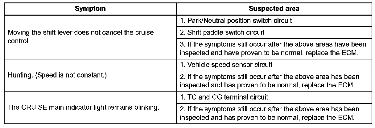 PROBLEM SYMPTOMS TABLEProblem Symptoms Table-Cruise Control System (Part 1):