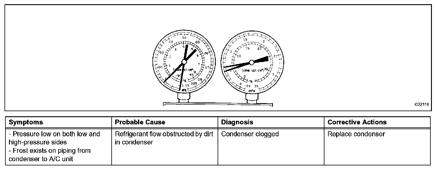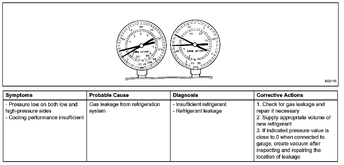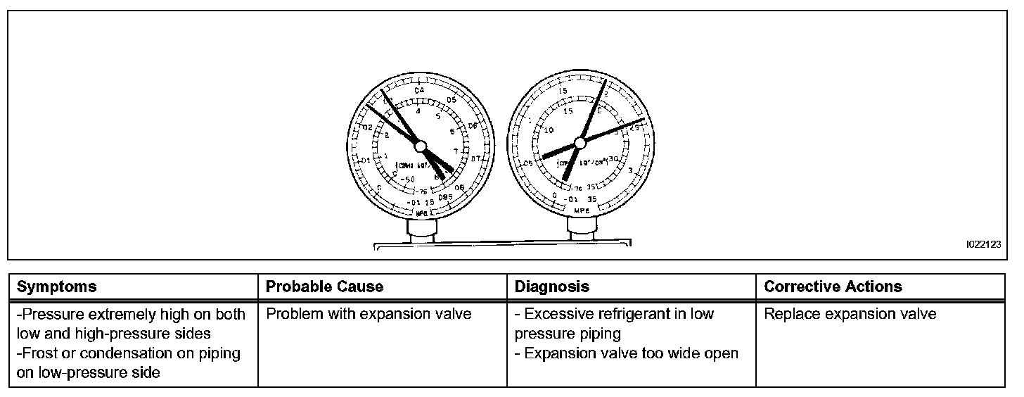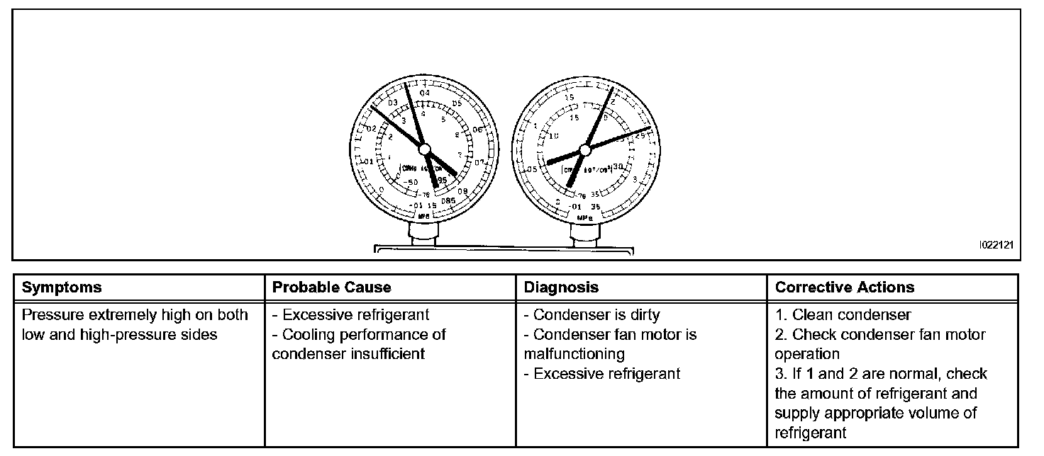 a. This method uses a manifold gauge set to locate problem areas. Read the manifold gauge pressure when the conditions are established. Test conditions: