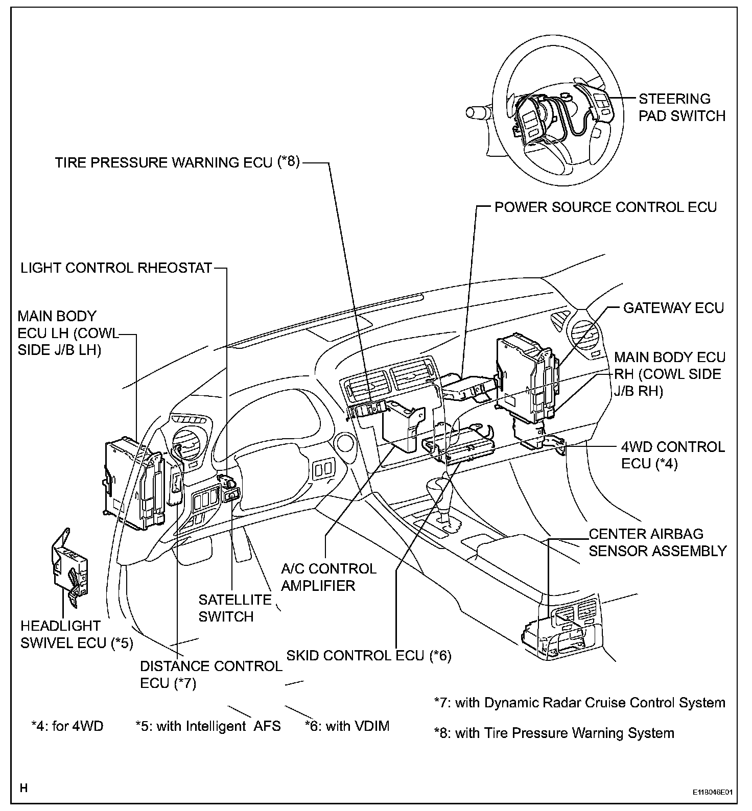 Headlamp Alignment Control Module: Locations