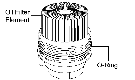 f. Remove the oil filter element and O-ring from the oil filter cap.