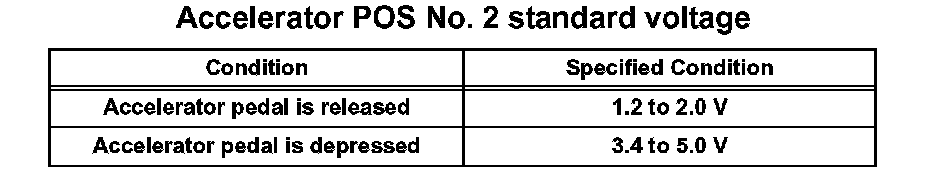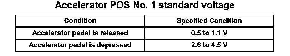 If the result is not as specified, check the accelerator pedal, wire harness or ECM.