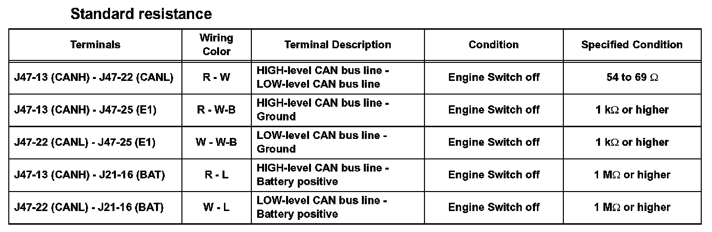 - The connectors connected to the CAN J/C can be distinguished by the colors of the bus lines and the connecting side of the junction connector.