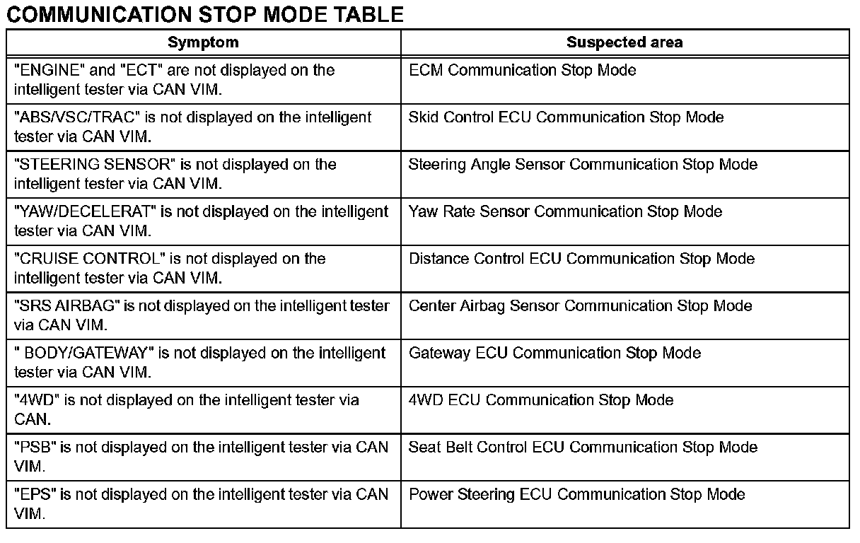 Problem Symptoms Table-Communication Stop Mode Table: