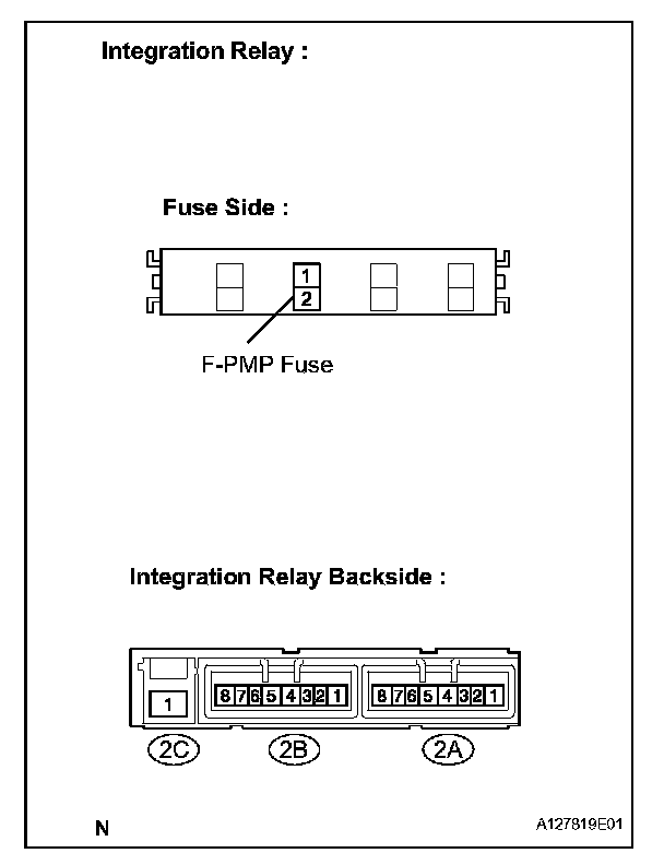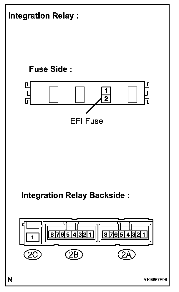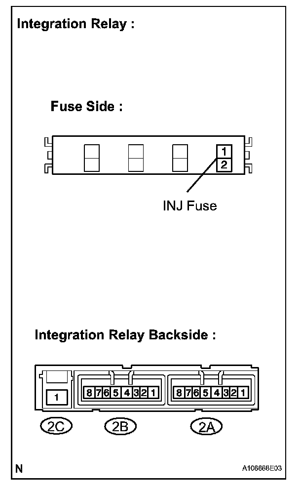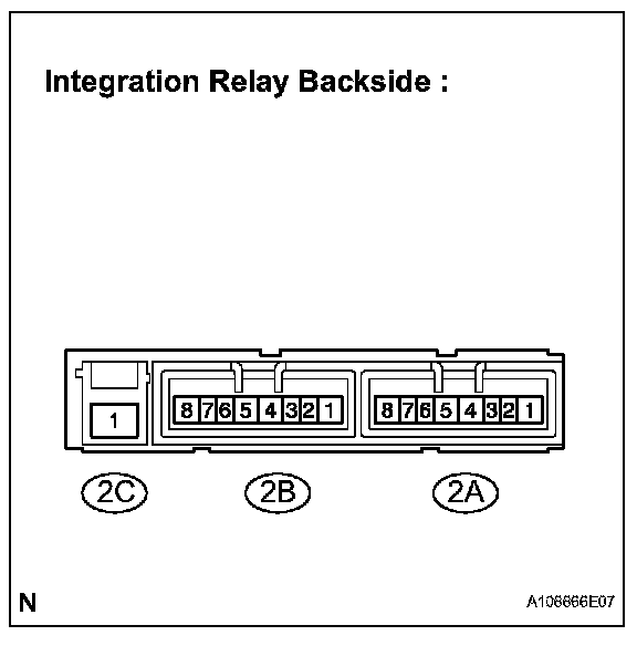 - The internal circuit of the integration relay is as shown in the illustration. Inspect the integration relay using the following procedures.