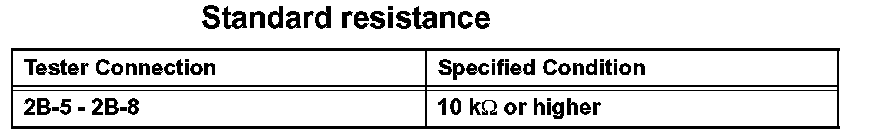 2. Connect the battery's positive (+) lead to terminals 2B-5 and negative (-) lead to terminal 2B-7. Using an voltmeter, measure the resistance between terminal.