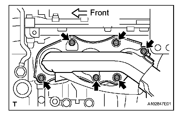 b. Install the exhaust manifold sub-assembly LH with the 6 nuts.