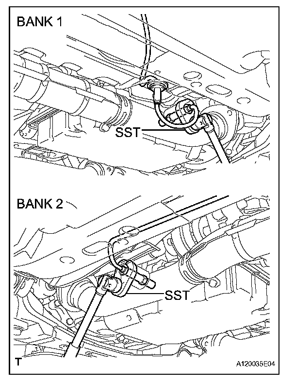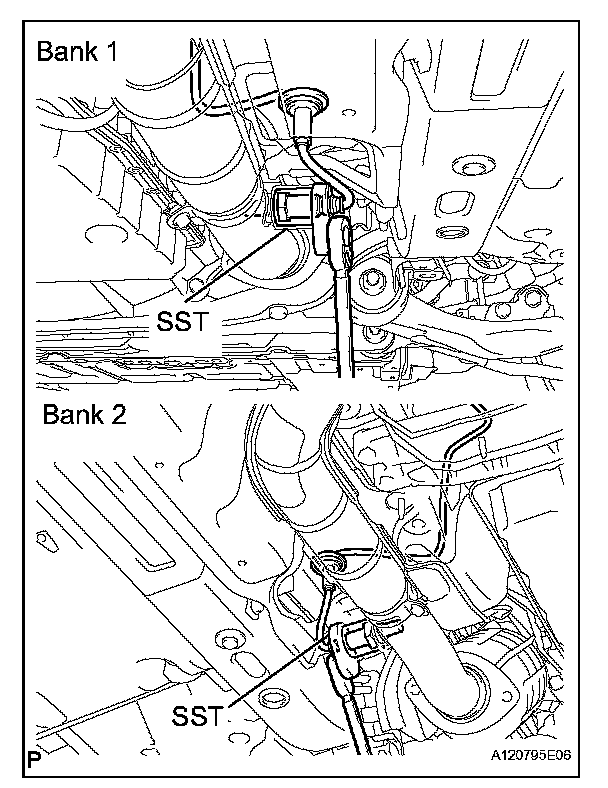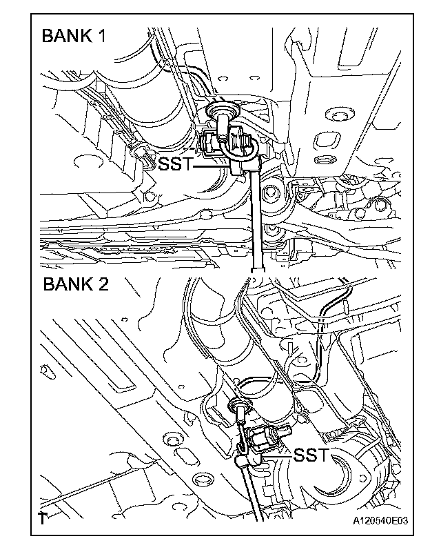 b. Using the SST, remove the oxygen sensor to the exhaust pipe assembly.
