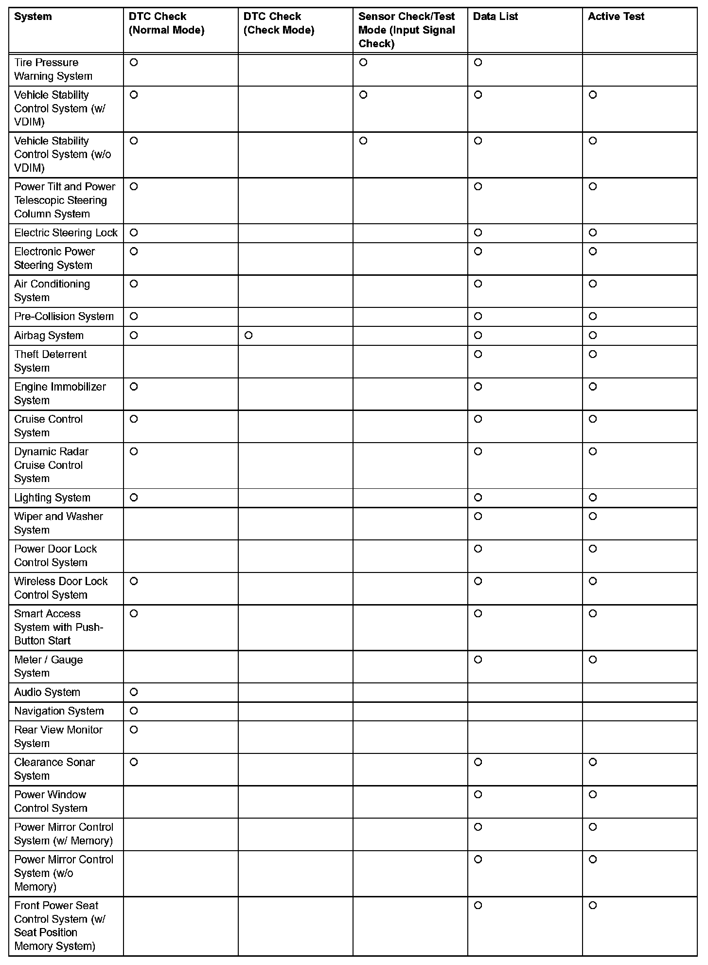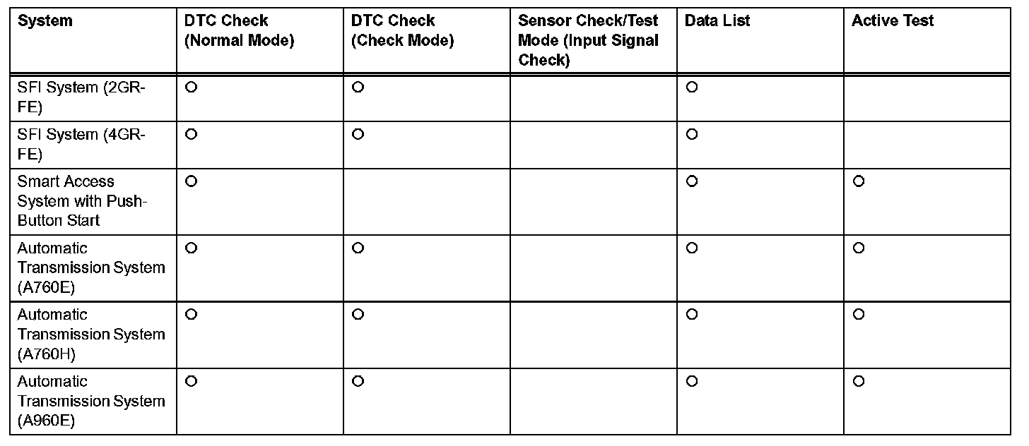 By using these functions, the problem areas can be narrowed down and troubleshooting is more effective. Diagnostic functions are incorporated in the following system in the LEXUS IS250/350.