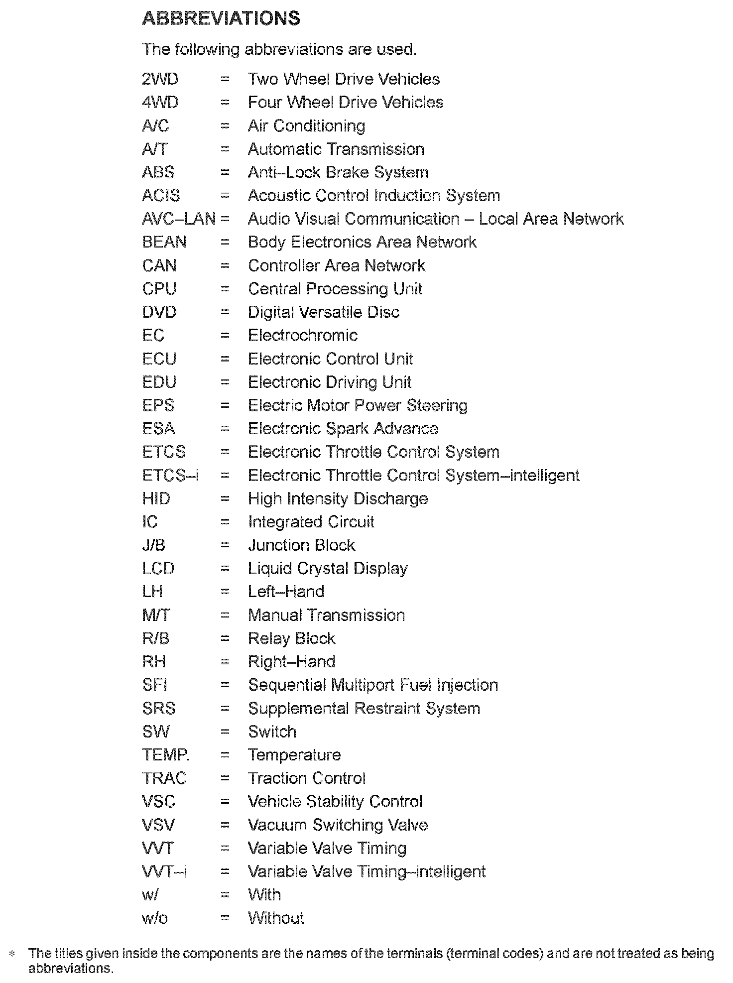 Abbreviations Used Within Diagrams