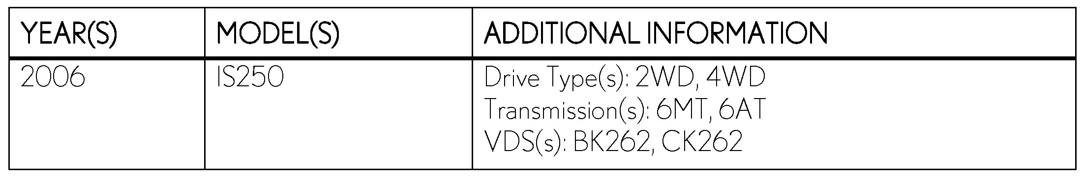 The information contained in this TSB supersedes the information for 2006 model year IS 250 in TSB Nos. 2387 and 2396.