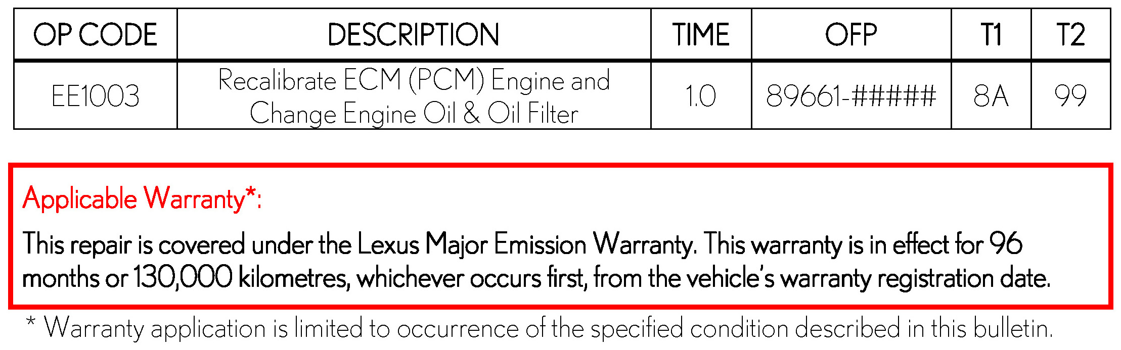 Follow the procedures outlined in TSB No. 2401, "Techstream ECU Flash Reprogramming Procedure", and flash the ECM (PCM) with the NEW calibration file update.