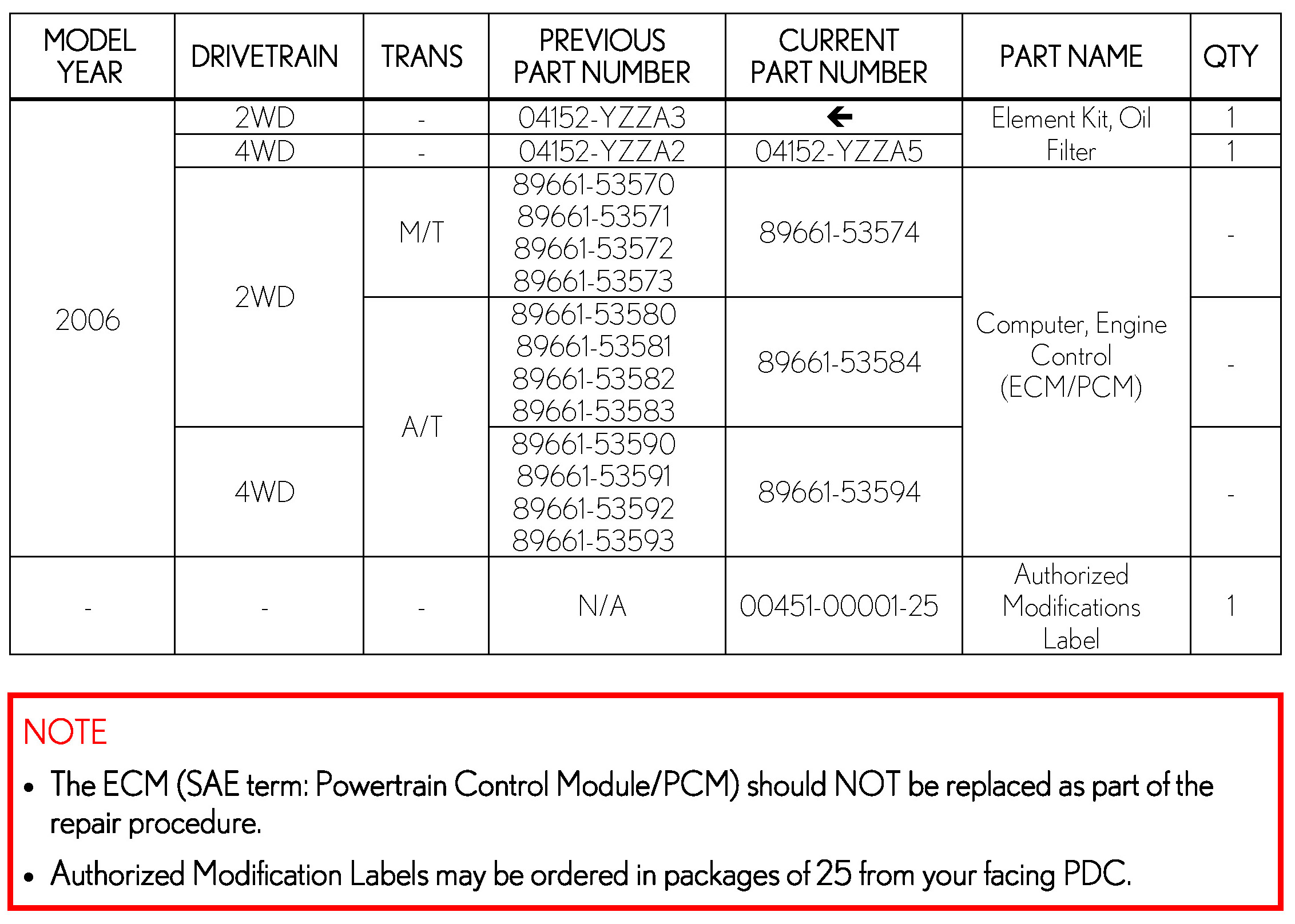 - ECM part number [Refer to the Parts Information section for the CURRENT PART NUMBER]