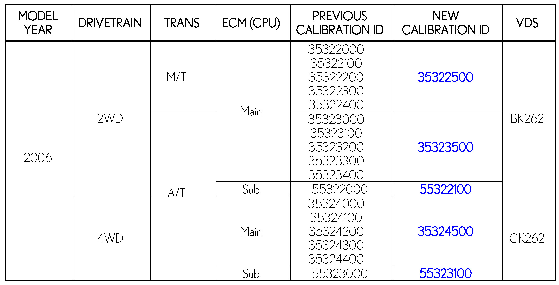 - Calibration ID(s) [Refer to the Calibration Identification Chart for the NEW CALIBRATION ID]