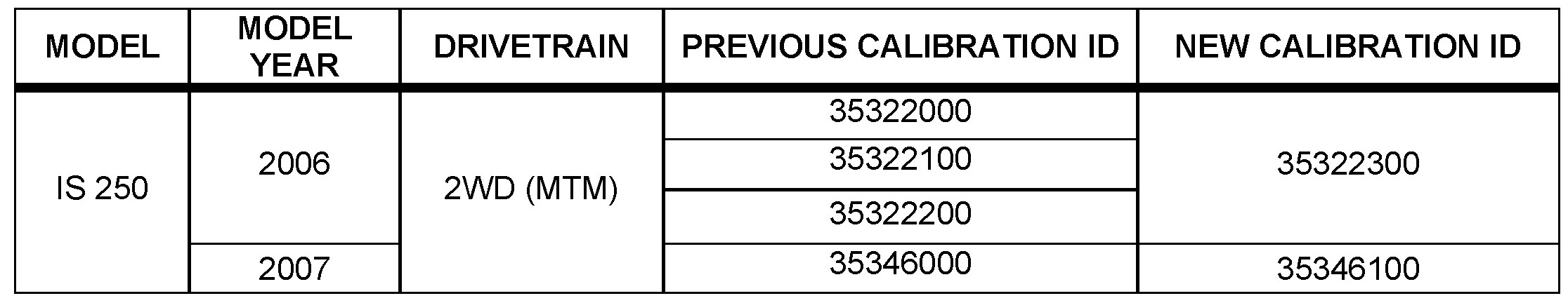 - Calibration ID(s): [Refer to the Calibration Identification Chart for the NEW CALIBRATION ID]