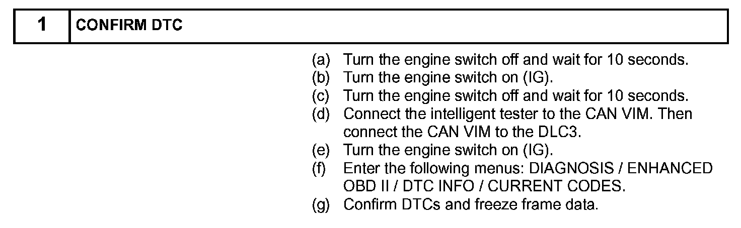 HINT: Do not turn the engine switch on (IG) until checking MONITOR STATUS. If the engine is started, the steps described above must be repeated.