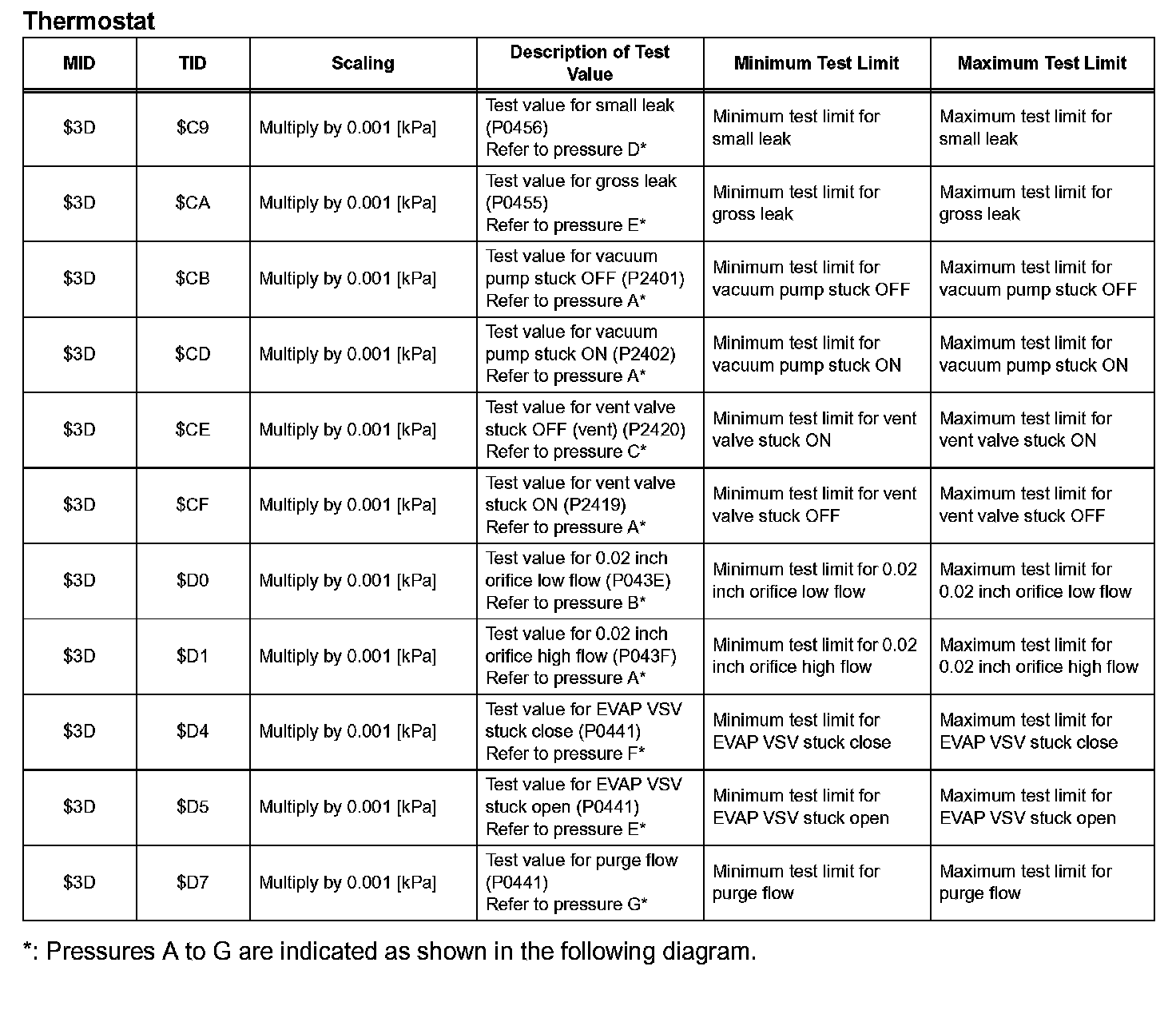 The test value and test limit information are described as shown in the table. This information is included under MONITOR RESULT in the emissions-related DTC sections:
