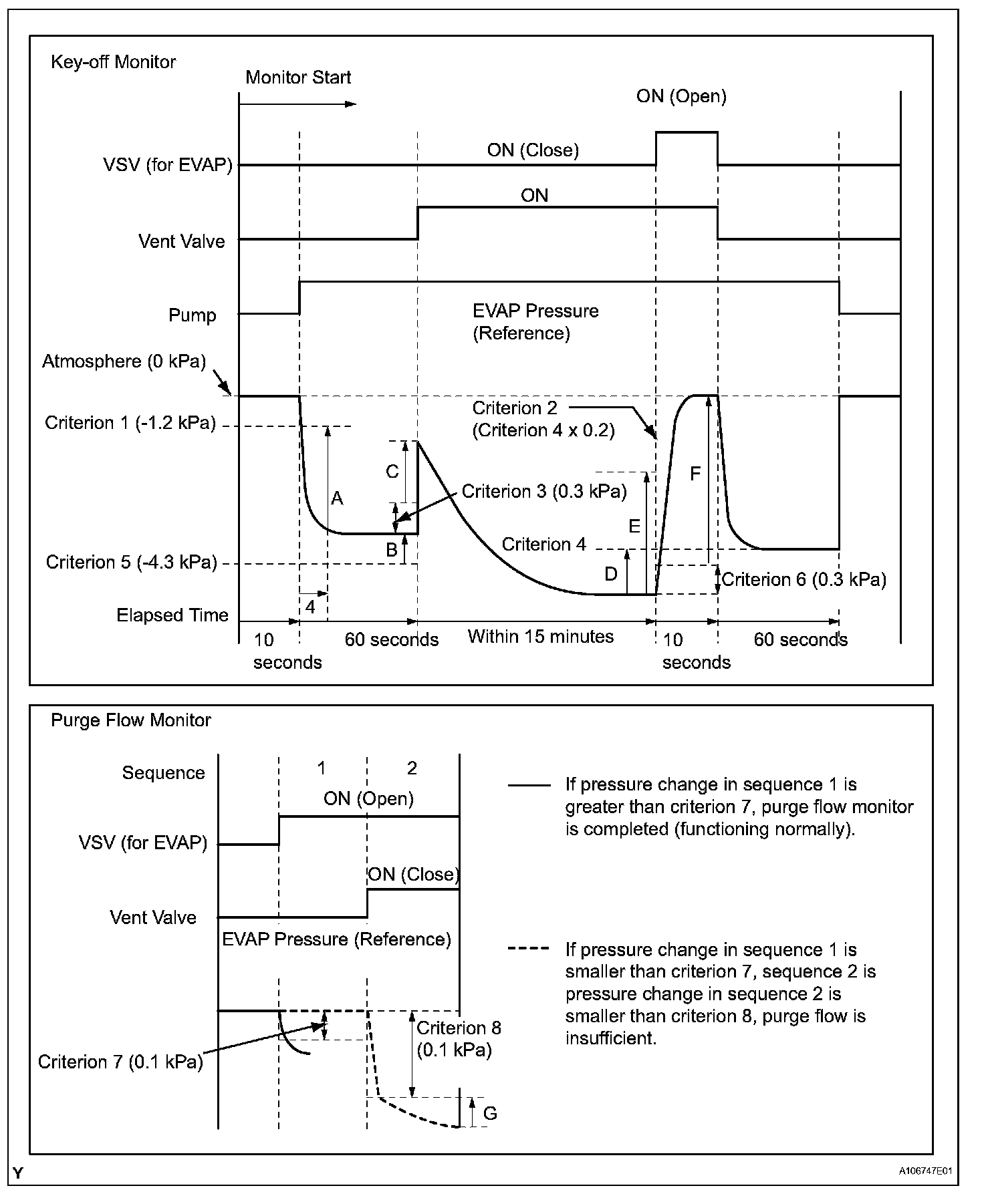 While the engine is running and the purge Vacuum Switching Valve (VSV) is ON (open), the ECM monitors the purge flow by measuring the EVAP pressure change. If negative pressure is not created, the ECM begins the 2nd monitor.