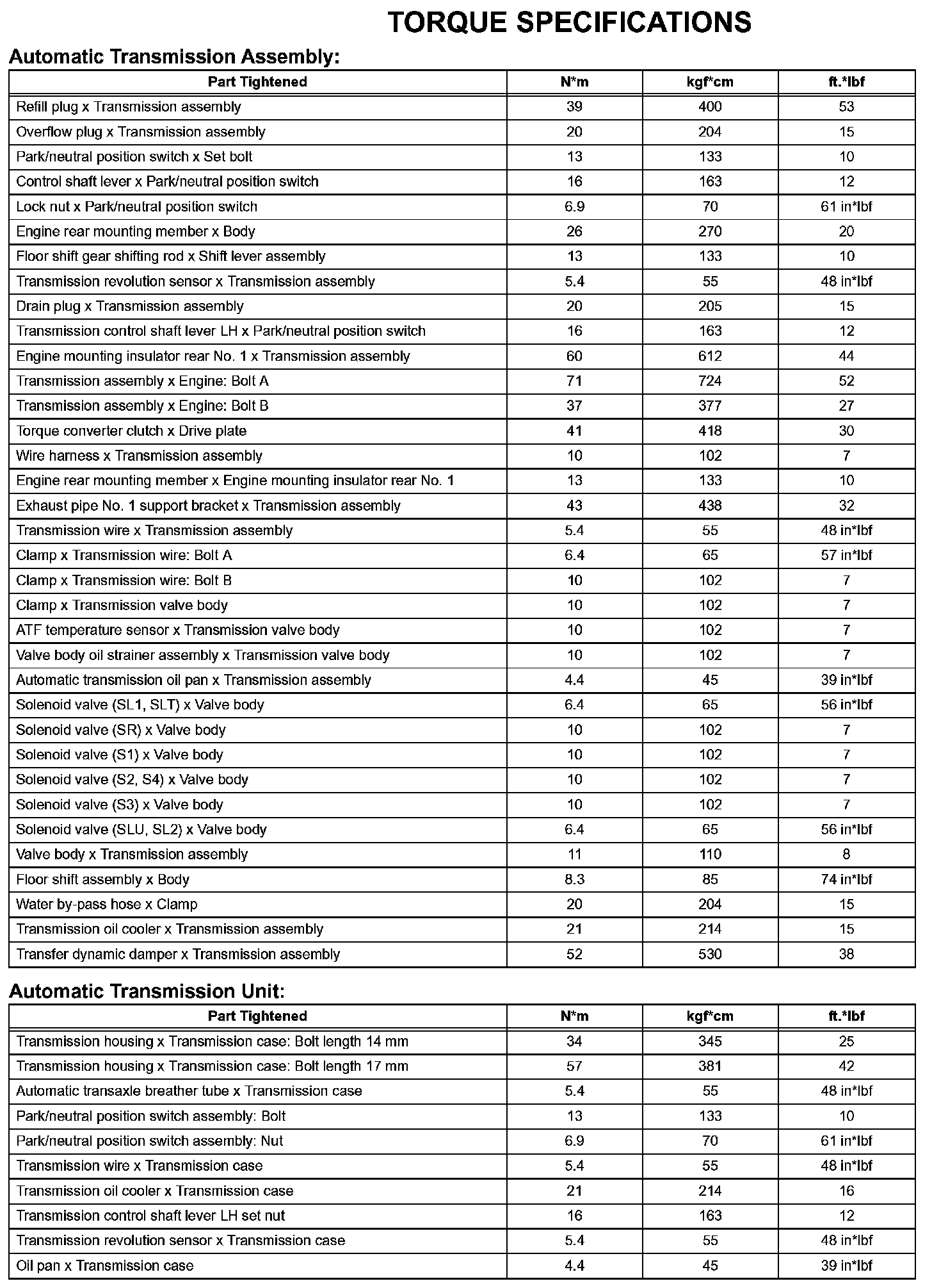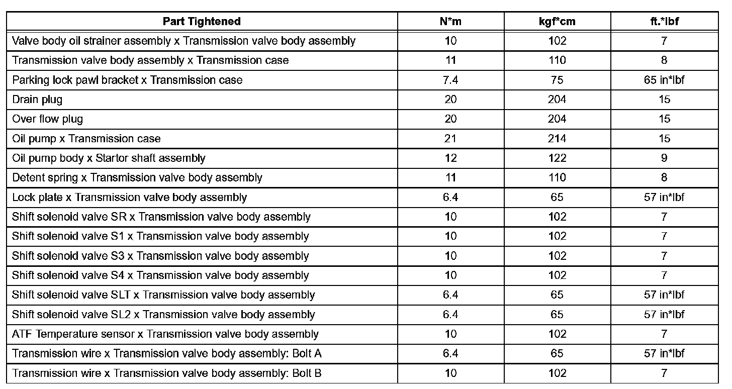 Automatic Transmission-Torque Specifications (Part 1):