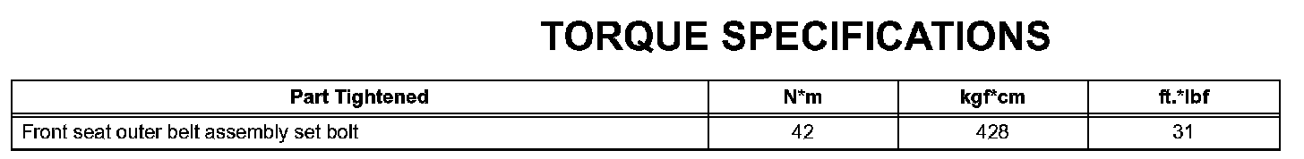Interior - Torque Specification