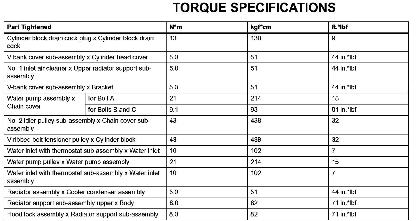 Cooling-Torque Specifications: