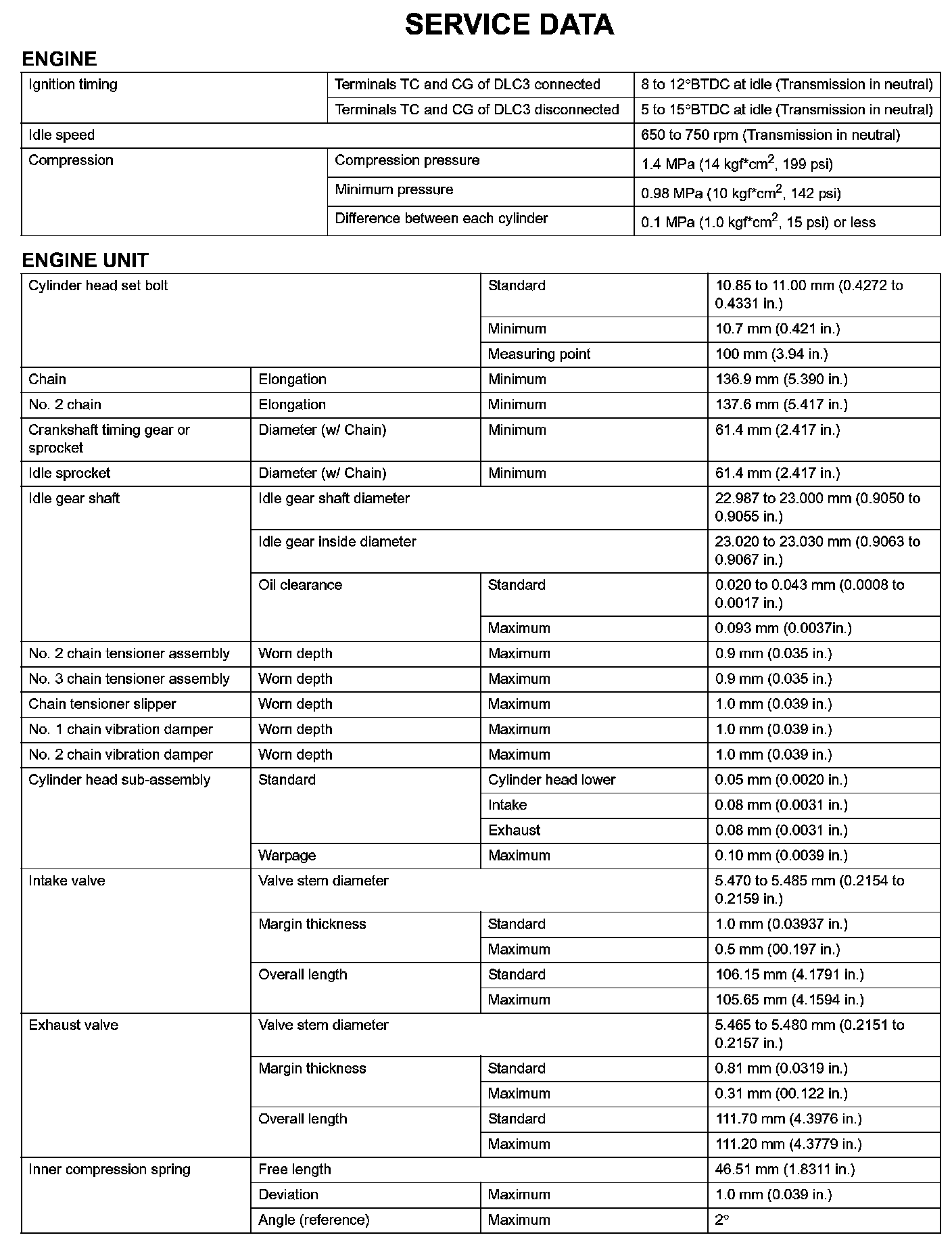 Engine Mechanical-Service Data (Part 1):