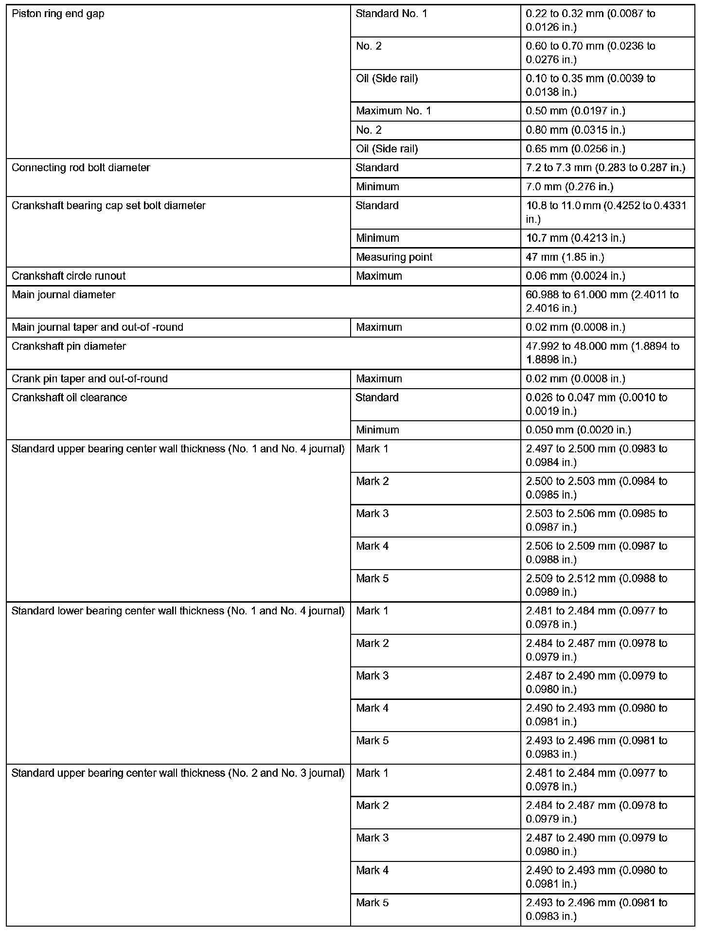 Engine Mechanical-Service Data (Part 2):
