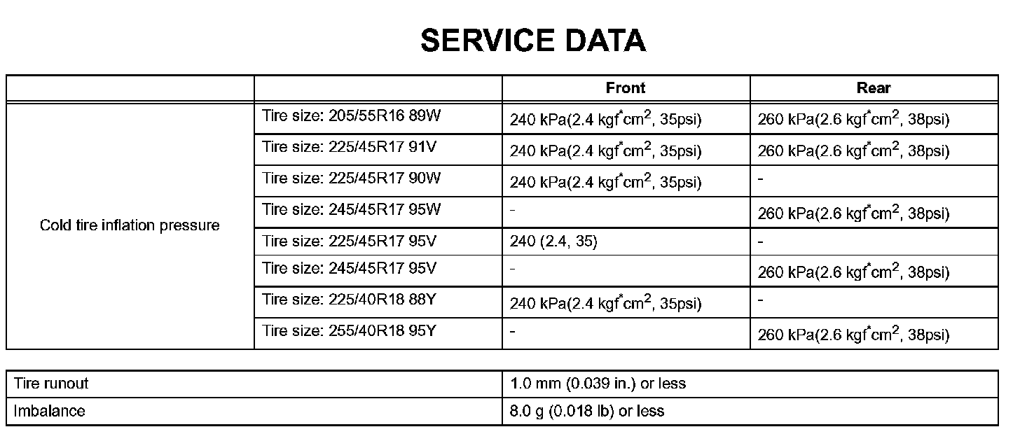 Tire And Wheel-Service Data: