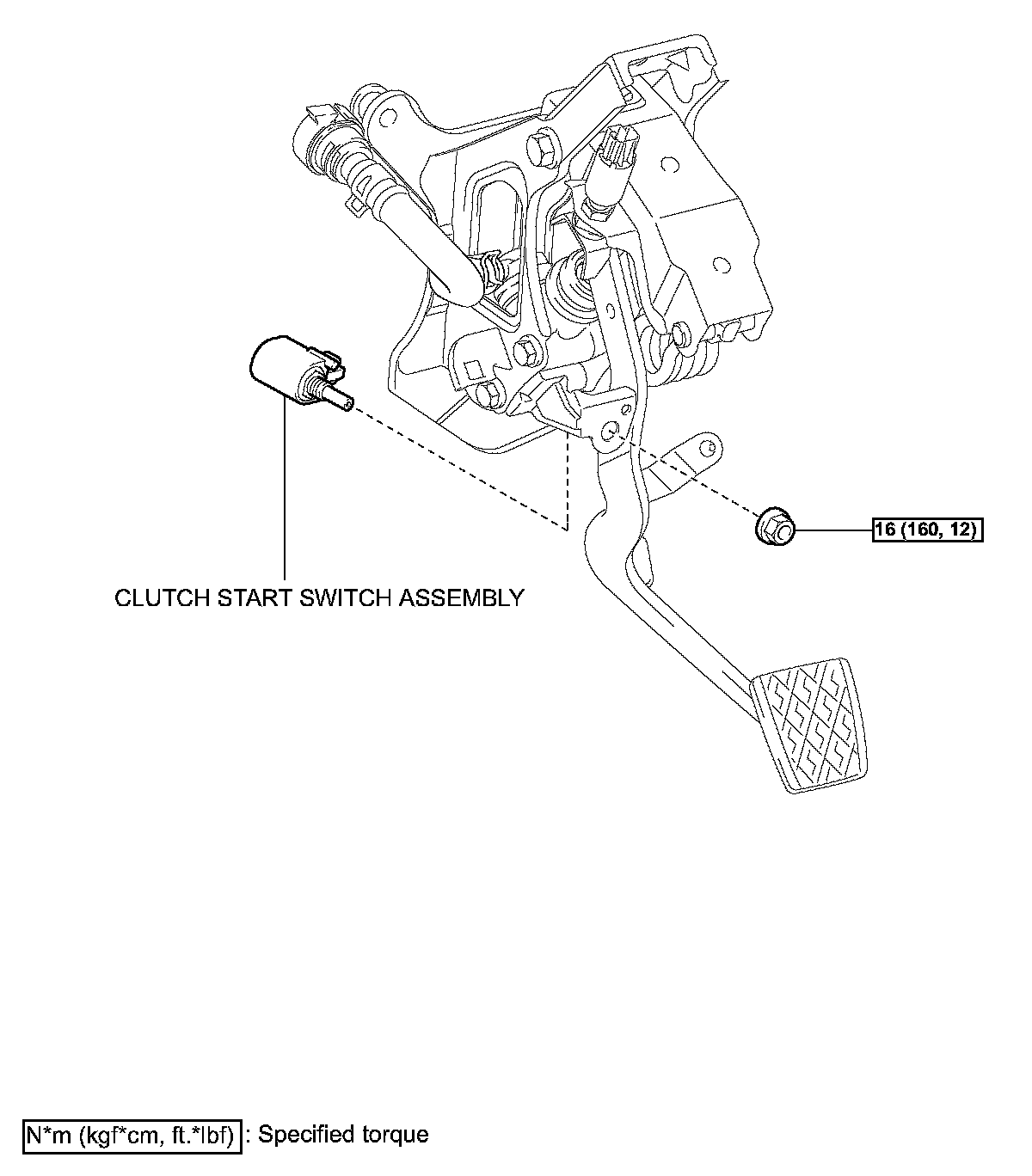 b) Remove the nut and clutch start switch assembly from the clutch pedal support.