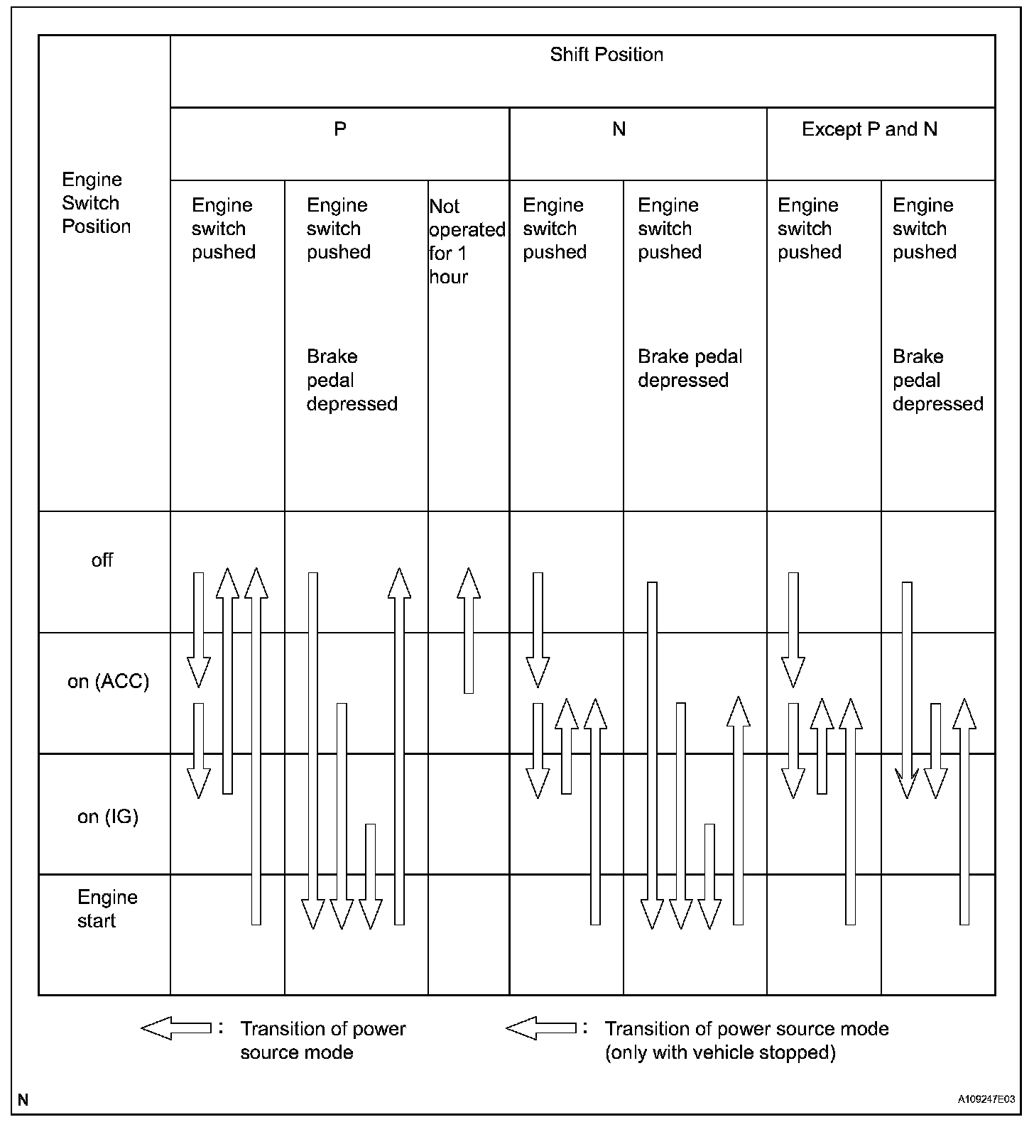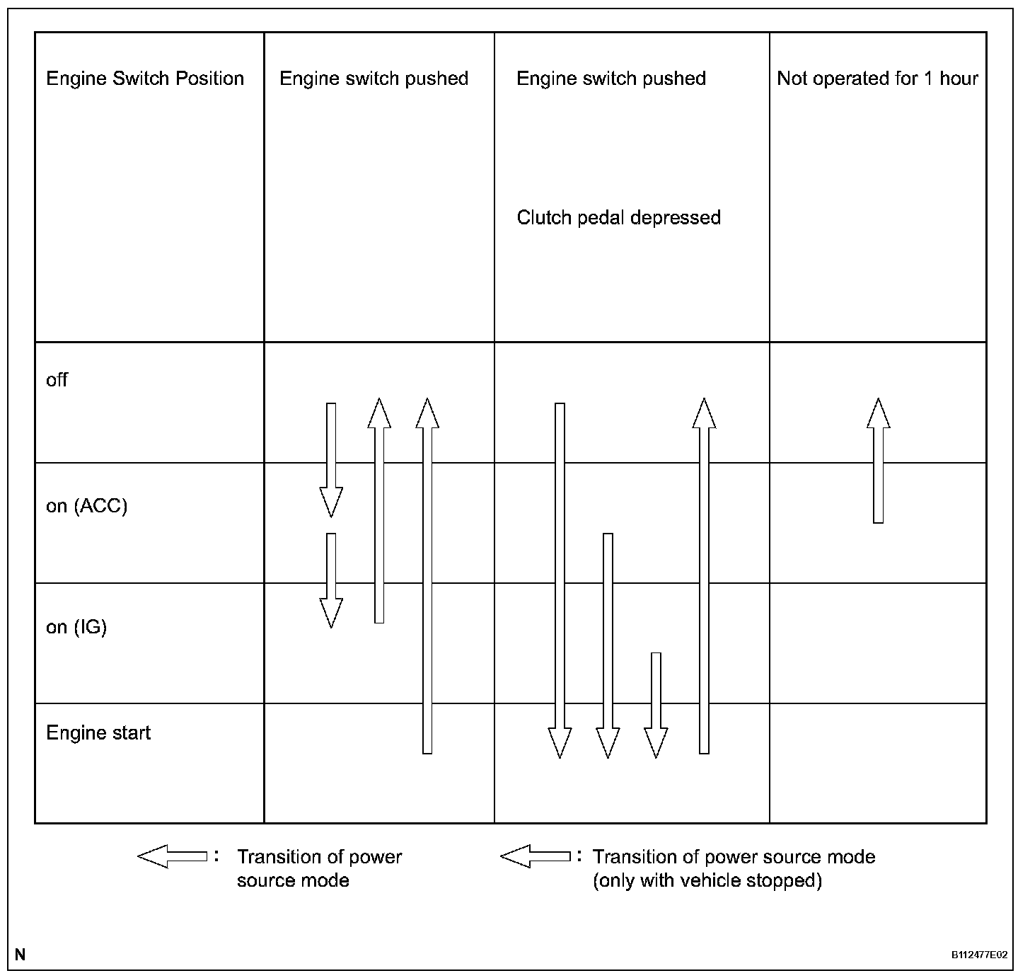 - The illustration shows the transition of power source modes. Transition of power source mode: