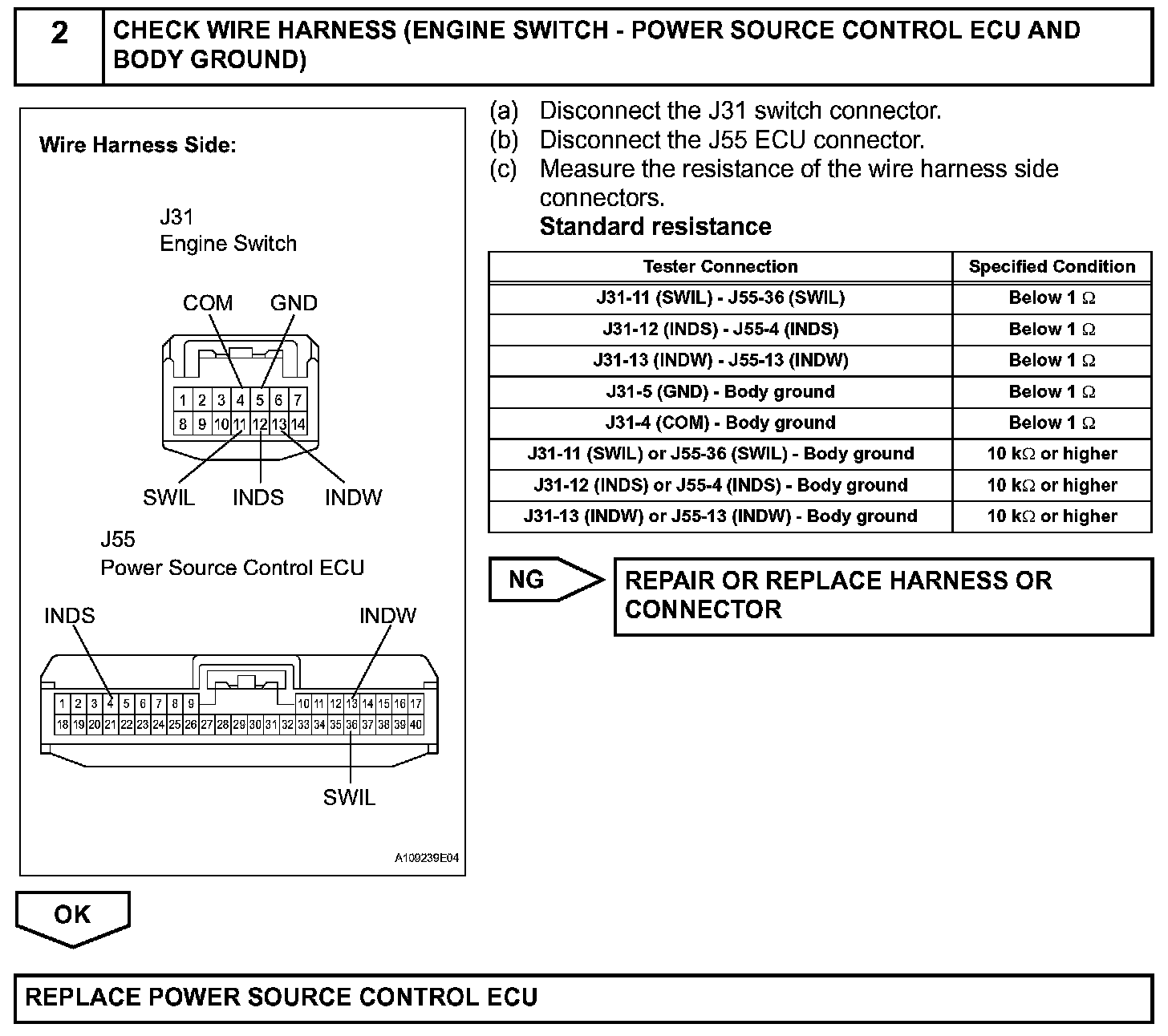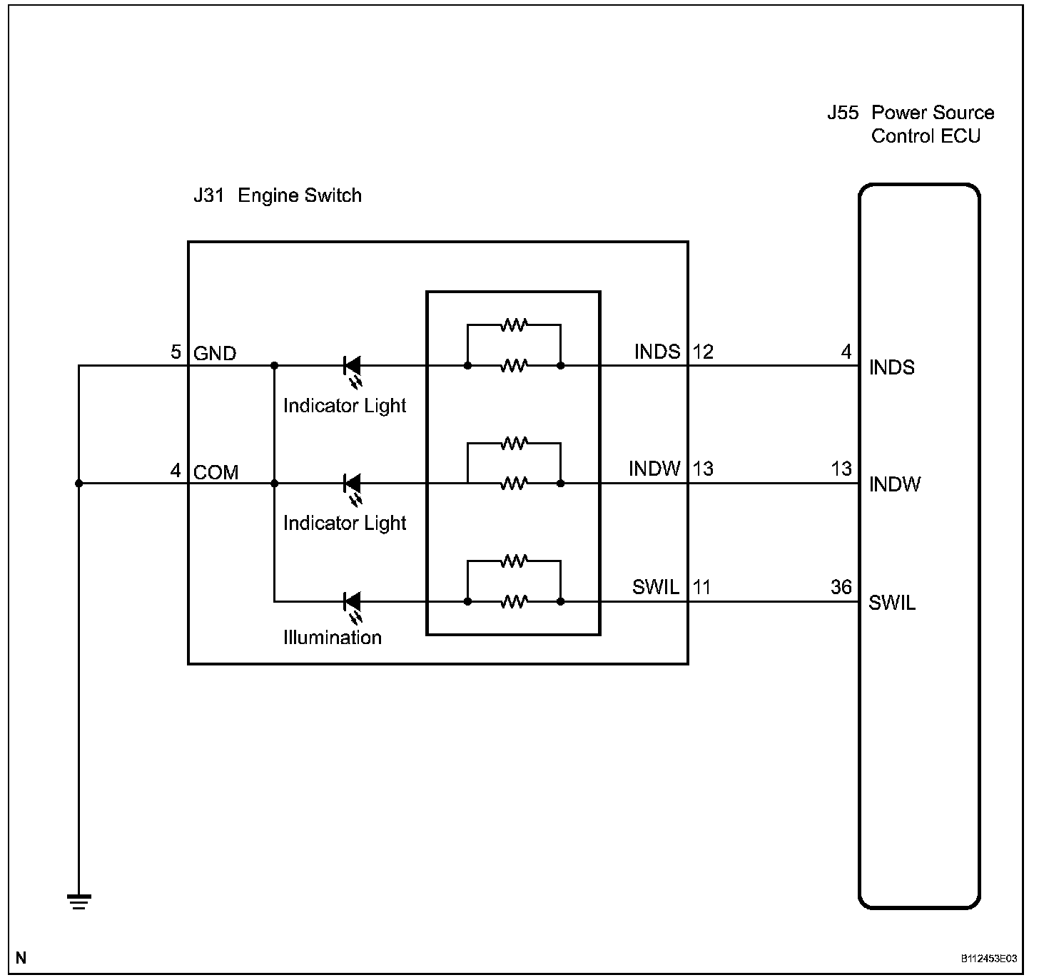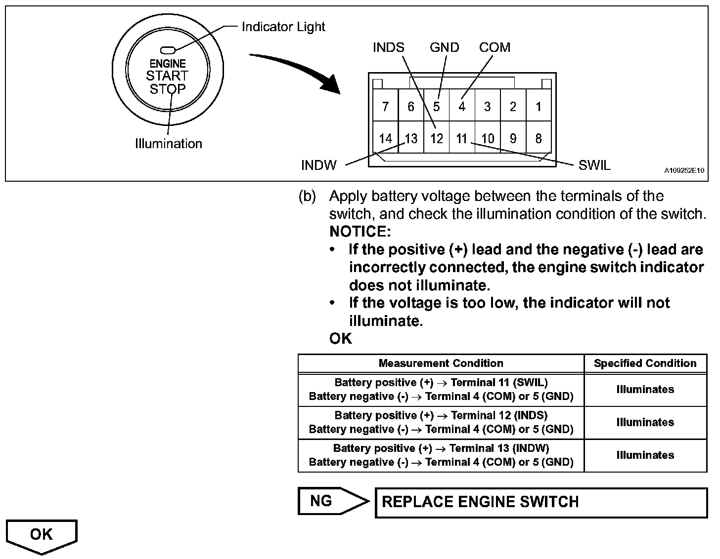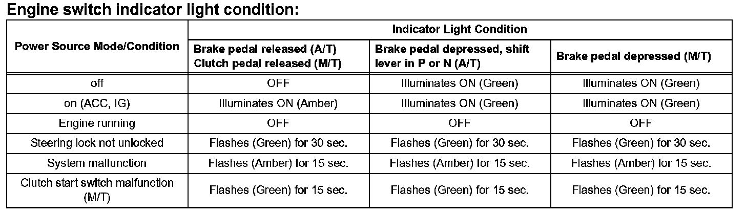 Engine start conditions or system malfunctions can be checked by the status of the engine switch