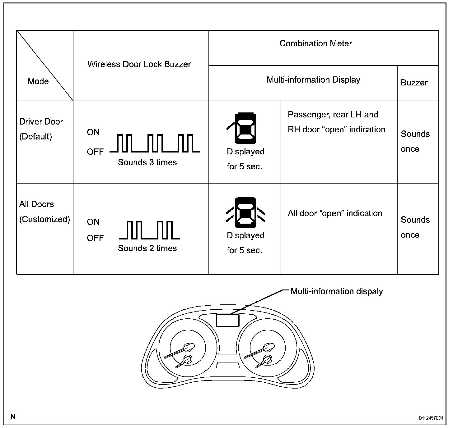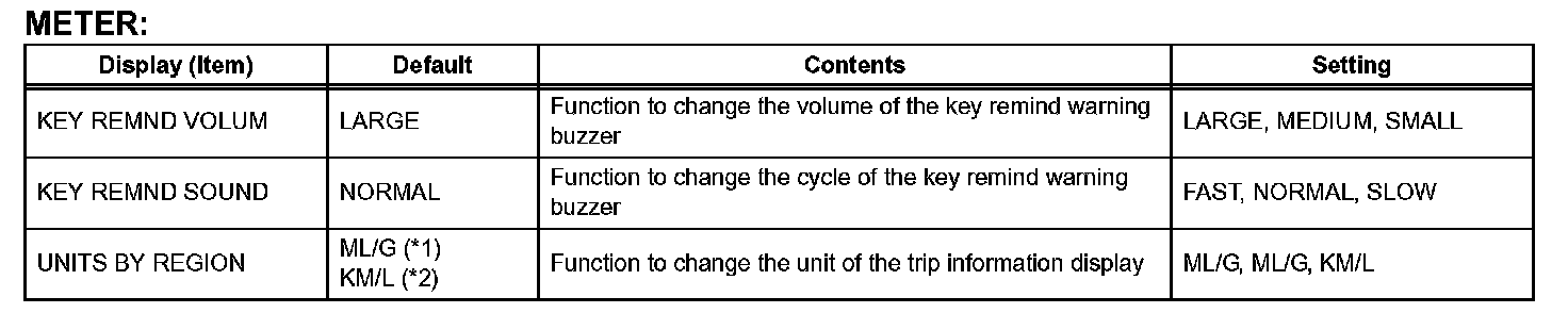 - When either the battery cable or the combination meter connector is disconnected, these buzzers are set on (enabled).