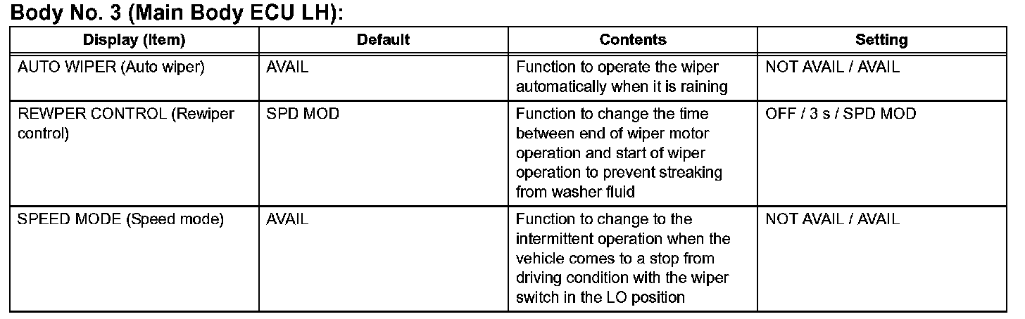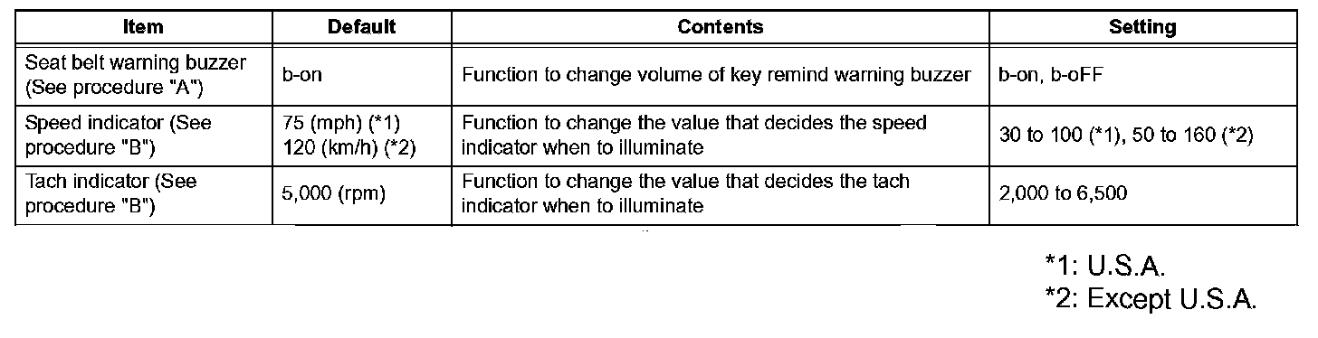 11. Seat Belt Buzzer ON/OFF setting (Procedure "A")