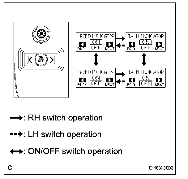 - The speedometer needle moves by 1 degree each time the LH or RH switch is pushed.