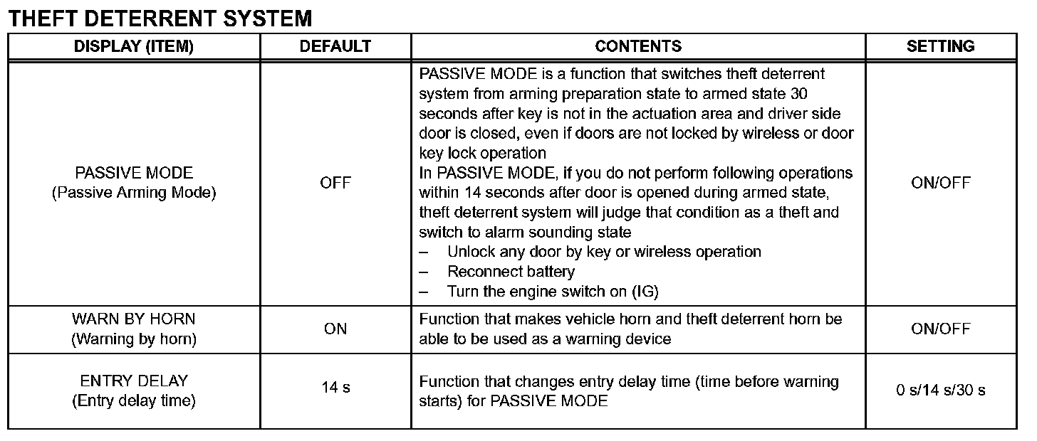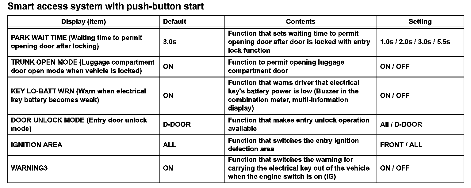 HINT: The function only changes the entry unlock mode of the smart access system with push-button start. It does not switch the unlocking of the wireless door lock control.