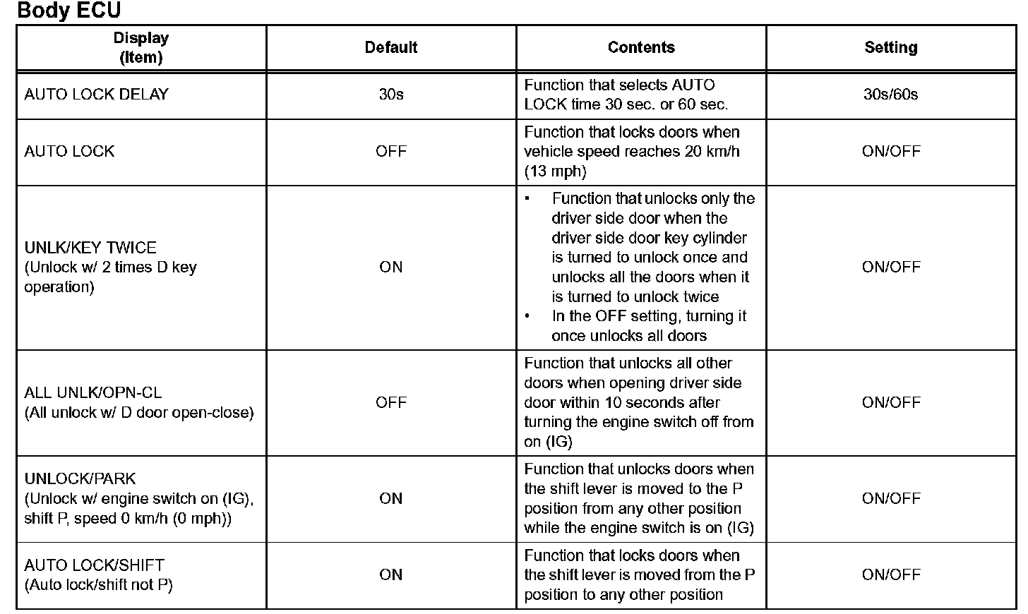 5. POWER DOOR LOCK CONTROL SYSTEM CUSTOMIZING FUNCTION WITH INTELLIGENT TESTER (REFERENCE)