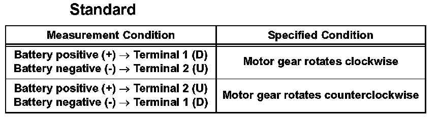 a. Apply battery voltage to the motor connector according to the table.