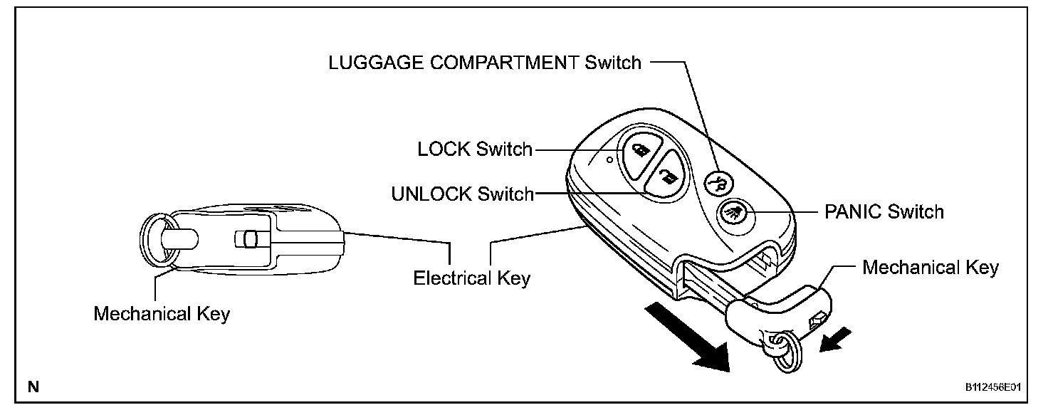Push the LOCK/UNLOCK/PANIC/LUGGAGE COMPARTMENT switch on the electrical key to operate each function.